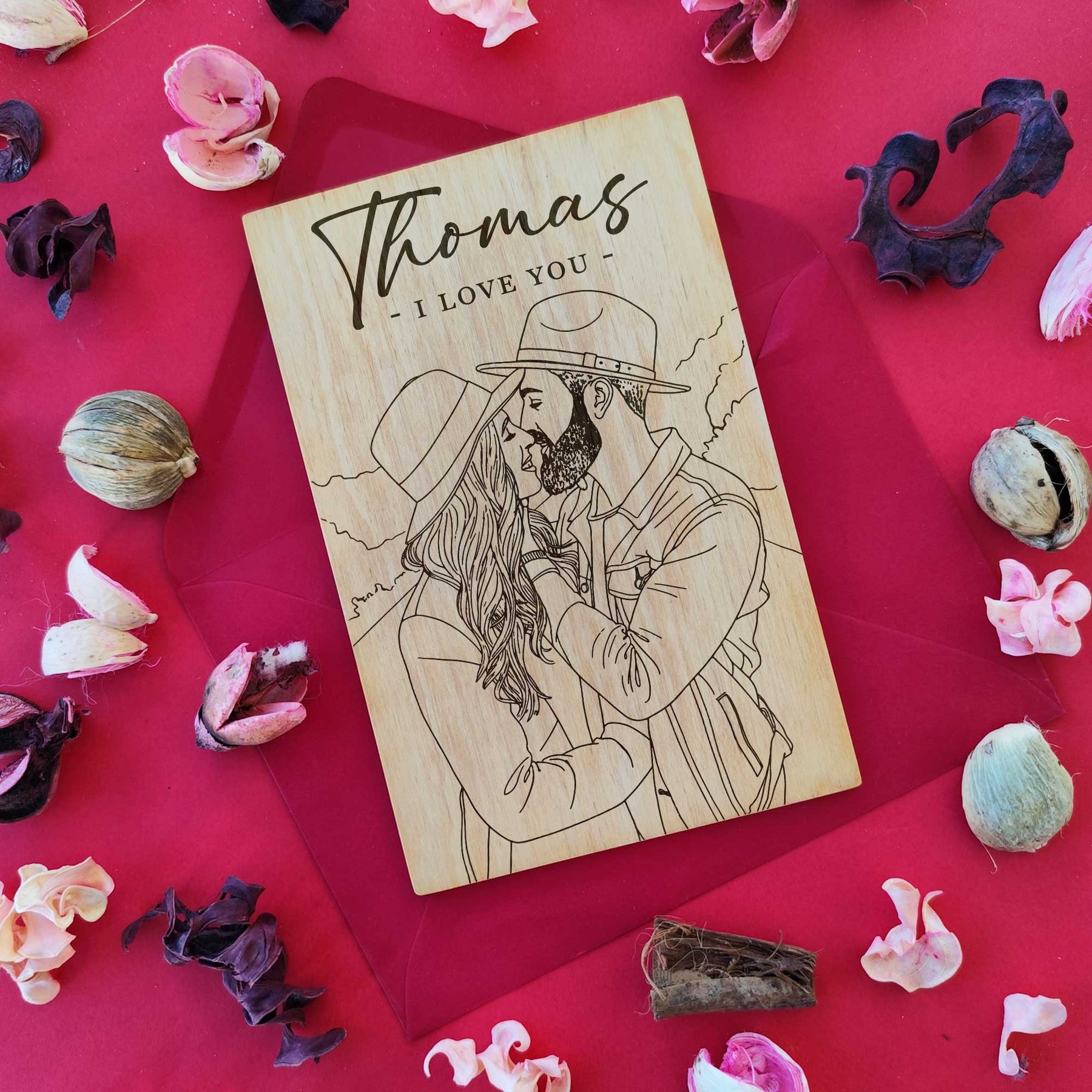 Laser Engraved Wooden Greeting Card with Red Envelope • Romantic Keepsake